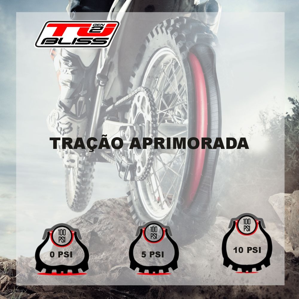 RED LINE RL21 PARA O TUBLISS GEN2 TU21 O "Red Line" do Tubliss Gen2 desempenha um papel protetor da câmara ar fundamental na função e no desempenho desse sistema inovador. Trata-se de uma marcação vermelha na parede lateral do pneu, indicando a área onde o Tubliss deve ser inflado. Essa marcação é crucial porque determina a pressão ideal para o pneu, garantindo um desempenho consistente e seguro em diversas condições de pilotagem. A qualidade do Red Line do Tubliss Gen2 é notável, sendo fabricado com materiais resistentes e duráveis que suportam as demandas do off-road. Sua durabilidade permite que ele mantenha sua integridade ao longo do tempo, mesmo diante de condições adversas de terreno e clima. A importância do Red Line reside no fato de que a pressão correta do pneu é essencial para o funcionamento eficaz do sistema Tubliss. ..
